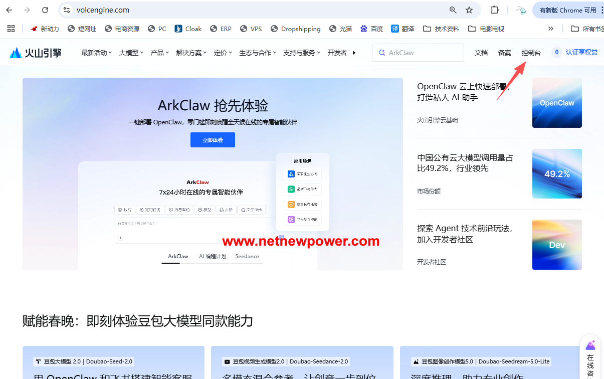 直接去火山引擎控制台申请,这是豆包大模型API的官方接入入口,4步就能搞定。